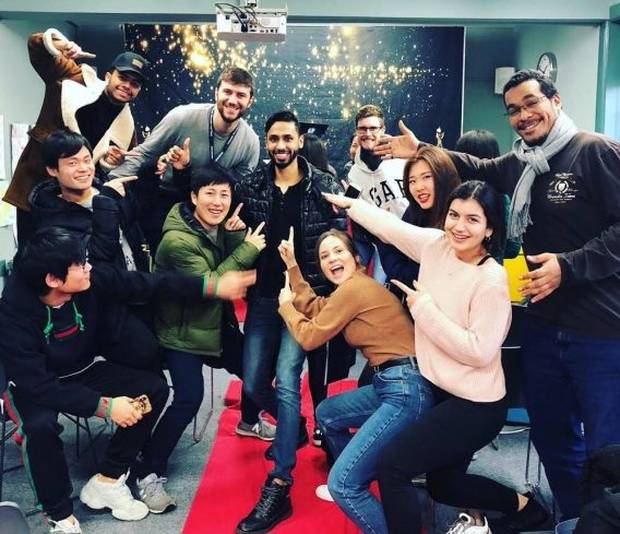 عزام مع أصدقائه من معهد إي أف بورنموث